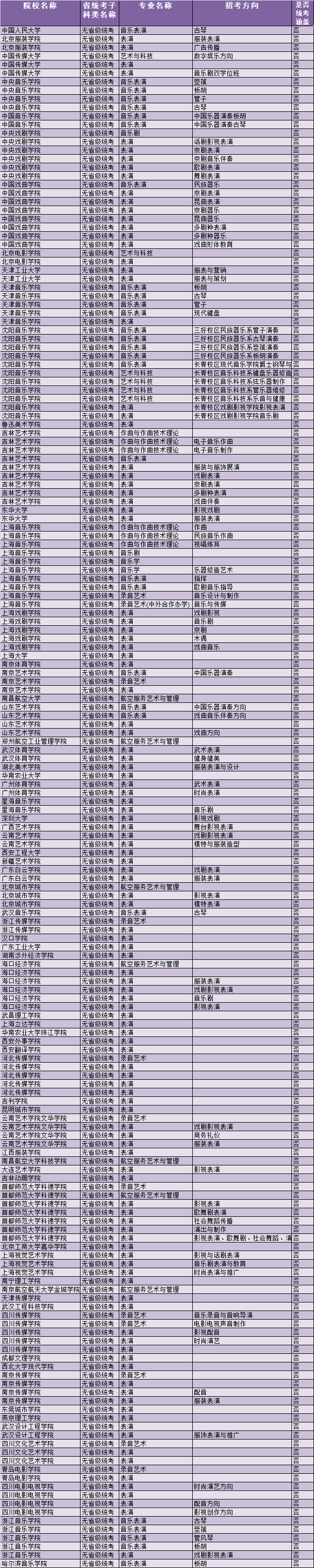 2023年广东音乐考生可考的音乐相关专业校考院校专业一览表
